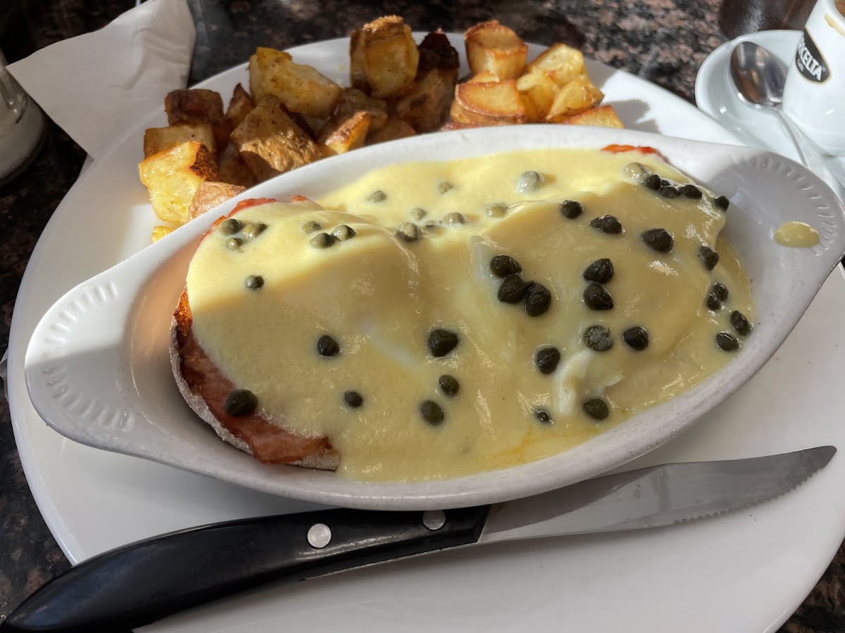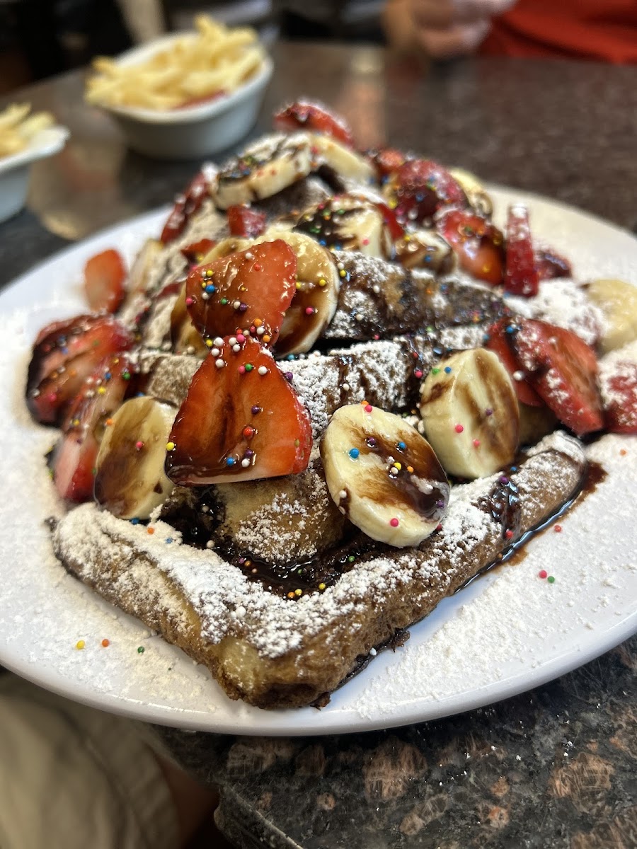 I saw the high praise on yelp and TA and thought we’d give it a try, but as we were walking past all the Italian places in little Italy I started wondering if we’d made a mistake…surely we should eat at one of them? Then we saw how tiny it was and almost turned right around. But there was one table open right by the door, and I am SO glad we made the effort to squeeze inside! Everyone was so kind and accommodating, even though with a 2yo we weren’t the easiest guests. Theo came over and said hi to our little one several times and then surprised her with a Mickey pancake all decorated. She was so excited! It was so nice to have such a chill local place to be treated like family and it was worth the walk and the close quarters…all part of the charm. Also, the food was amazing. I’d sworn off keeping leftovers this trip just because of convenience, but you better believe I took home the several slices of French toast I didn’t finish. It was delicious and beautiful! The whole family felt the same about their meals.