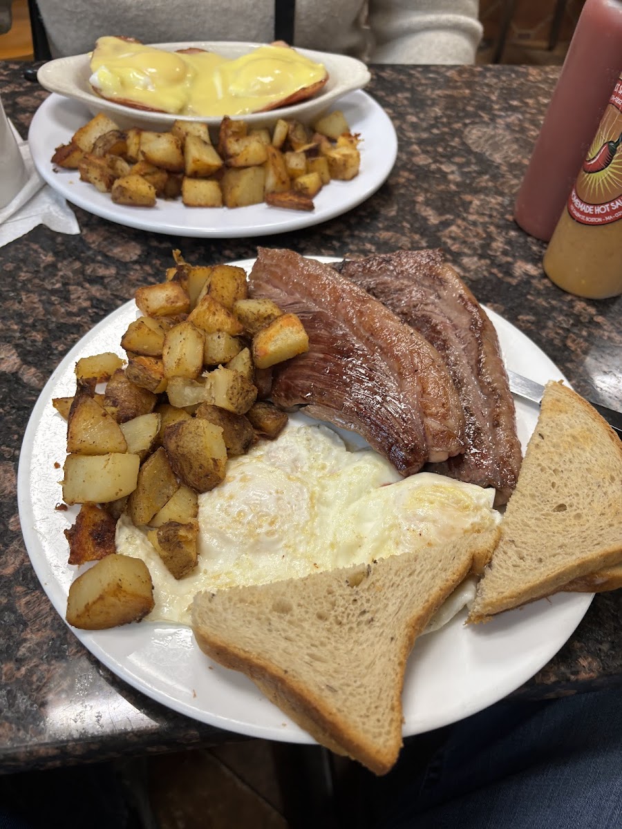This is definitely a very welcoming place. If i lived in Boston, I'd be a regular there. It seems like a place that gets pretty busy and is absolutely worth the wait. I had steak, eggs and home fries which were very good. The staff seems to know a vast majority of their customers, which is really nice to see, and even as an out of towner, I'd love to come back if I am in Boston again. Pros: Friendly, welcoming staff Delicious food Cost is not crazy Clean place There is a restroom Cons: Street parking, which is very limited
